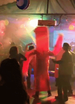 簡單易上手、還原度還絕對低不到哪去的服裝,也很快讓充氣人偶成為變裝道具的熱門款。如果沒有舞動起來,旁人可能還真不知道這是個啥玩意,不過只要一扭起來,他們馬上就會露出心領神會的微笑。