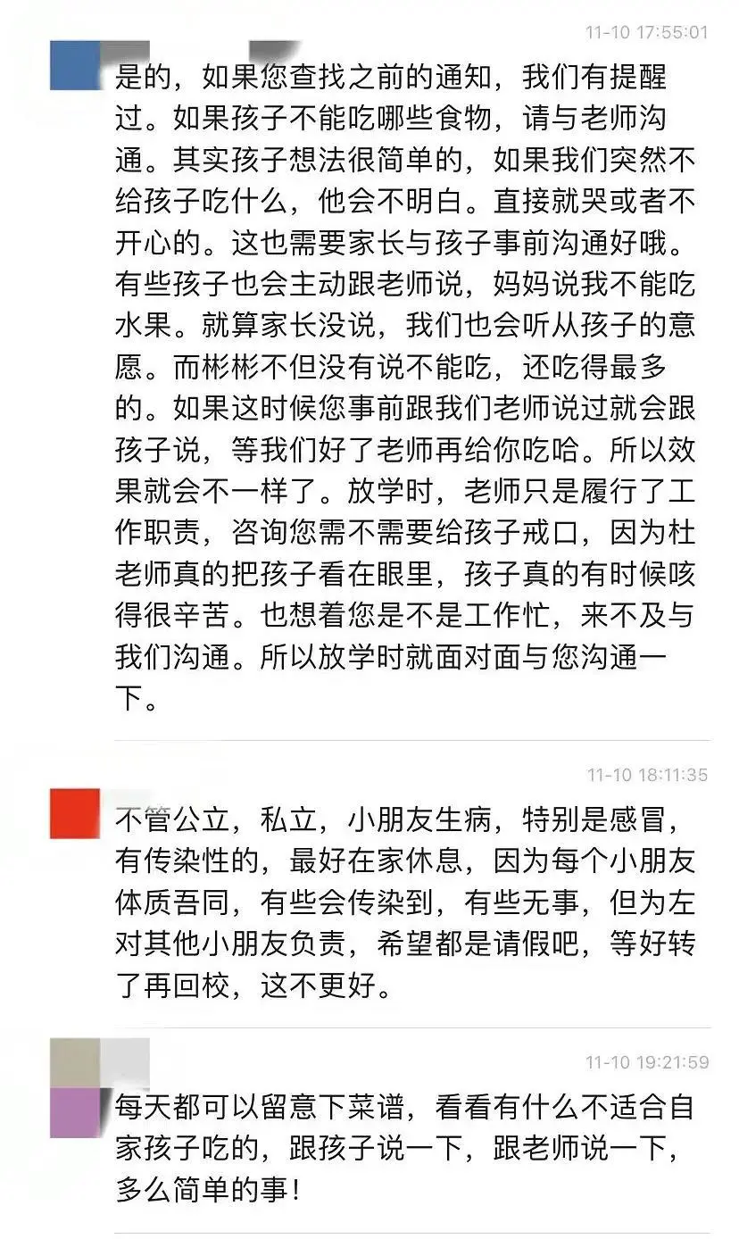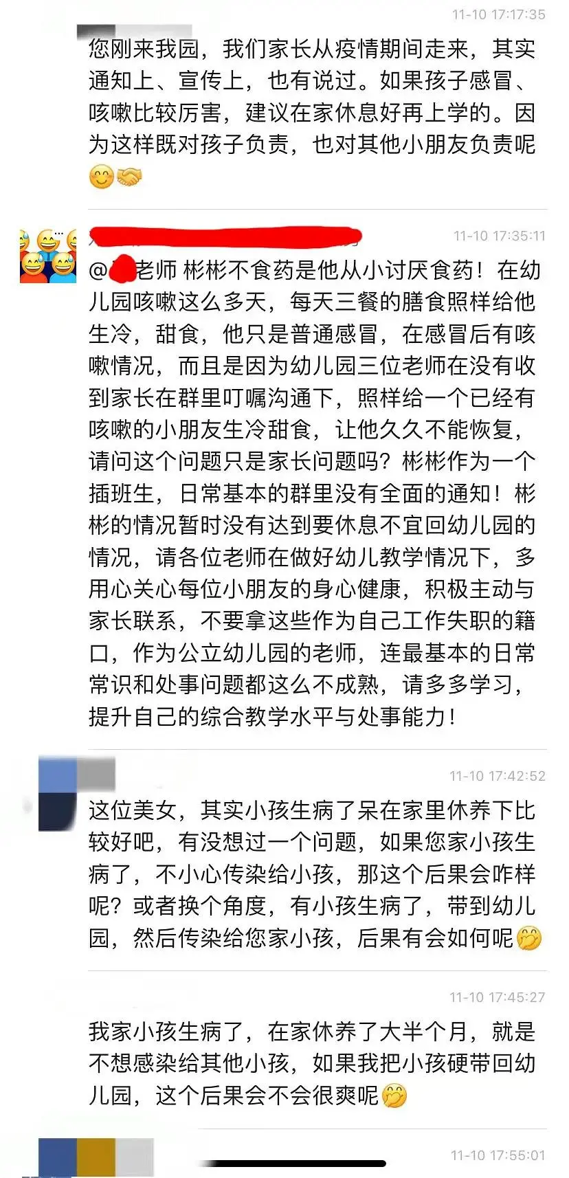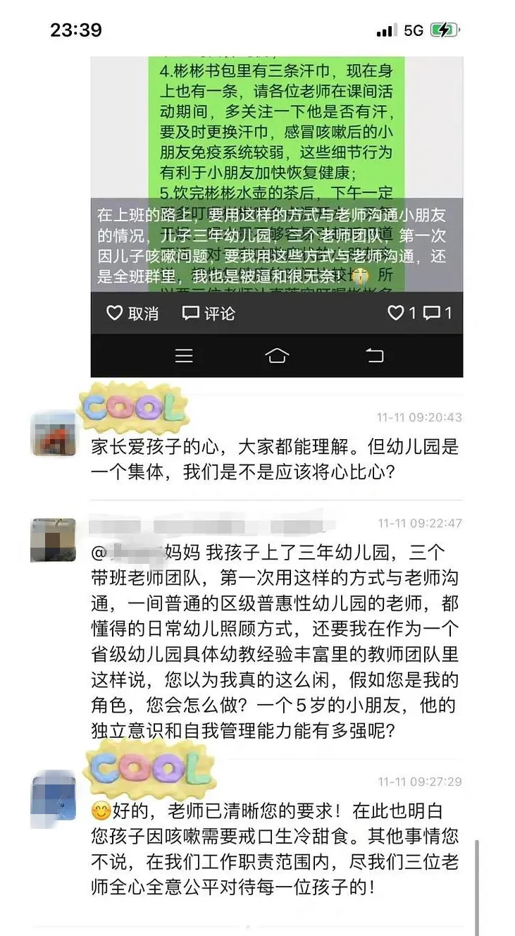 起因很簡單,家裏小朋友感冒咳嗽,然後這位彬彬媽咪在幼兒園班羣裏發消息,請老師多留意關照。