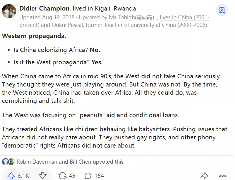 盧旺達網民 Didier Champion 的回答也獲得了3100+高贊: