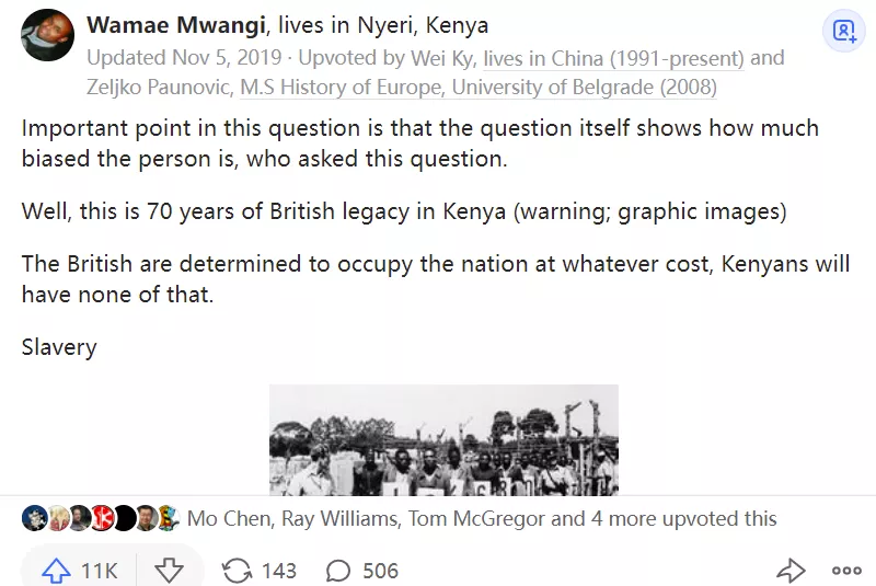 在外網,有一個抹黑中國的話題:儘管中國為發展非洲做了很多事情,但你是否認為中國在非洲的所作所為實際上比殖民時代的歐洲更危險?