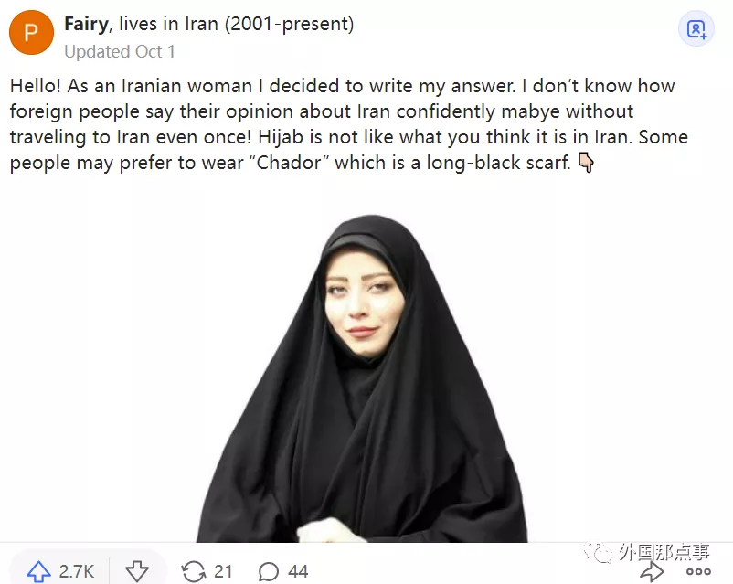 在話題”在伊朗生活是一種怎樣的體驗?“中,伊朗網民 Fairy 談了自己的經歷,同樣獲得了2700+高贊。