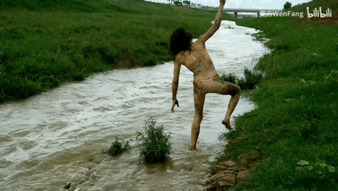但是雯方一點沒猶豫,赤裸身體扎進水裏。
