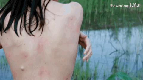 ▲在水塘裏拍照,被蟲子咬得渾身是包