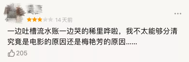 王丹妮雖然表現出了梅姐在年輕時的青春、樂觀和無畏,但是在梅豔芳後期的處理上欠缺就比較明顯了。