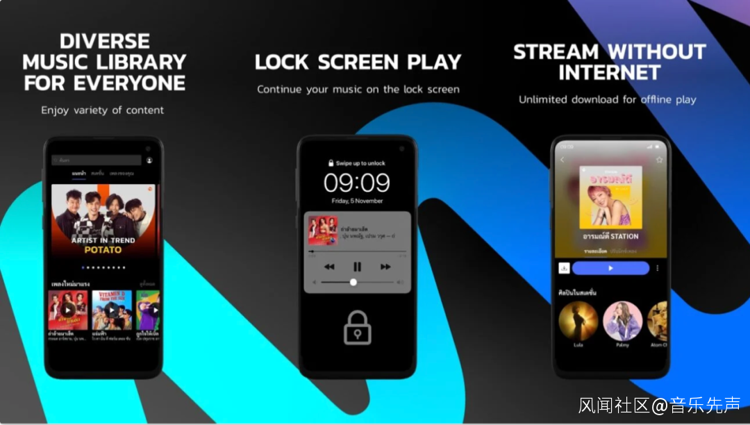 據GMM Grammy透露,該國4500至5000萬智能手機用户中只有20%通過流媒體應用收聽音樂,廣播和視頻共享平台則更為普遍。GMM 表示,相對視頻形式,Plern提供了一種低數據的替代方案。
