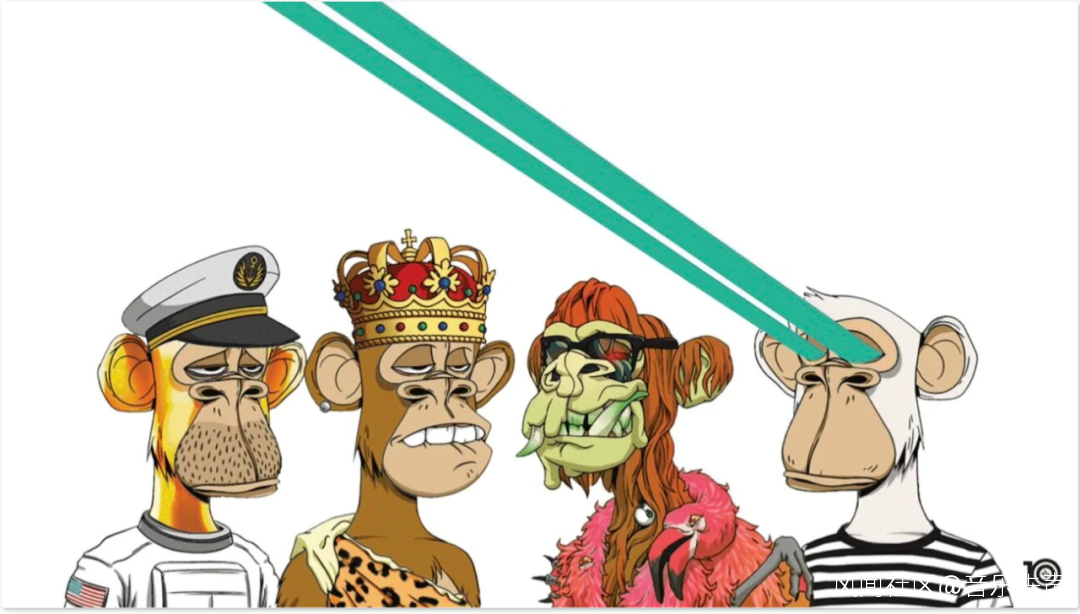 這些四個虛擬角色來自NFT項目Bored Ape Yacht Club,UMG 稱這是有史以來最成功的NFT項目之一;2021年4月,Bored Ape Yacht Club發行了10000個NFT,為NFT收藏者提供了角色100%的貨幣化權利。Bored Ape售罄後,幾位創始人於 2021 年 8 月推出了Mutant Ape Yacht Club,這是一個包含 20,000 只原始猿的變異版本的新集體。Bored Ape 和 Mutant的所有者還可以搶先體驗所有 KINGSHIP NFT、體驗和敍事選擇。