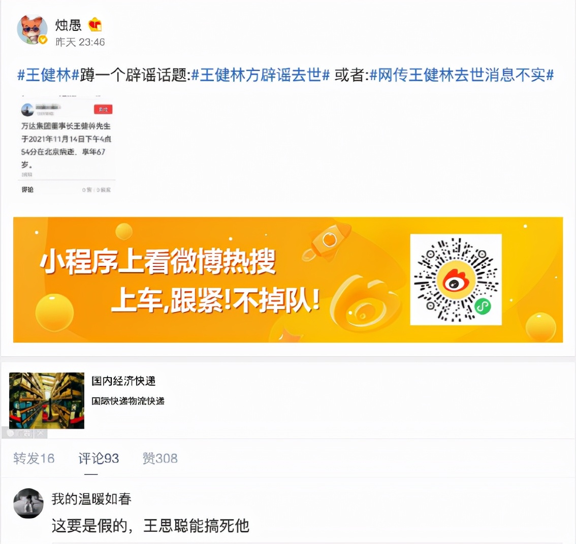 13個閲讀到熱搜第一,王健林是如何在微博“被去世”的?_風聞