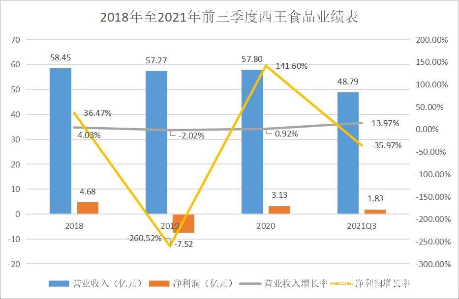 2021 年上半年,西王食品的營收主要依賴植物油產品和營養補給品。其中,植物油的營收佔比為47.23%,營養補給品的營收佔比為42.05%。