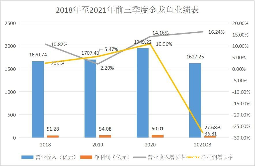 (金龍魚股價走勢圖 來源:老虎證券)就業績而言,2021 年前三季度,糧油加工板塊企業整體上均出現了一定的下滑。金龍魚、深糧控股、金健米業、西王食品的淨利潤出現下滑,道道全的營收出現下滑,只有京糧控股實現了營收淨利雙增。仍以金龍魚為例,在三季報中,金龍魚對其前三季度淨利潤下滑的原因進行了分析。首先是原材料價格上漲致使利潤受到擠壓;其次是市場競爭加劇影響;最後是2020 年同期大豆壓榨利潤水平較高,2021 年前三季度壓榨利潤相對較低。
