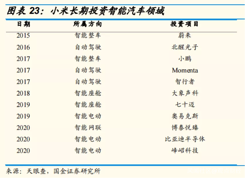 宣佈造車後,小米開始在汽車領域進行更多戰略投資,投資方向將更傾向於汽車產業鏈上下游,以期形成汽車領域的“小米生態”。