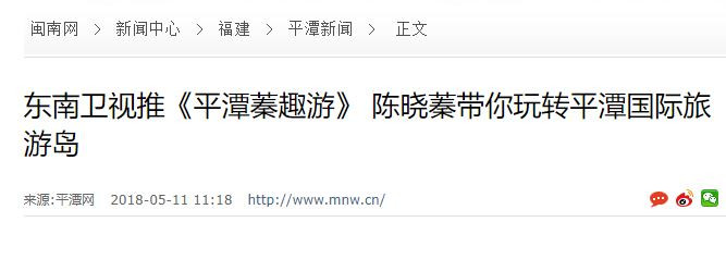 2018年,東南衞視製作特別節目《平潭蓁趣遊》,她擔任節目主持人,透過與平潭各行各業的台灣人的對話與碰撞,介紹平潭的歷史、自然風光、開放開發現狀以及未來的藍圖。