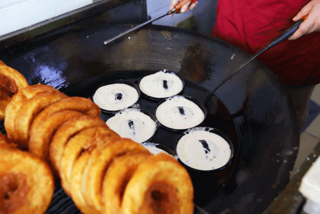 因為面窩主要原料不是麪粉,而是用大米和黃豆混合磨成的米漿,入鍋後炸成邊厚中空的小餅,吃起來有大米的清香和甜味,又被稱為“東方的甜甜圈”。