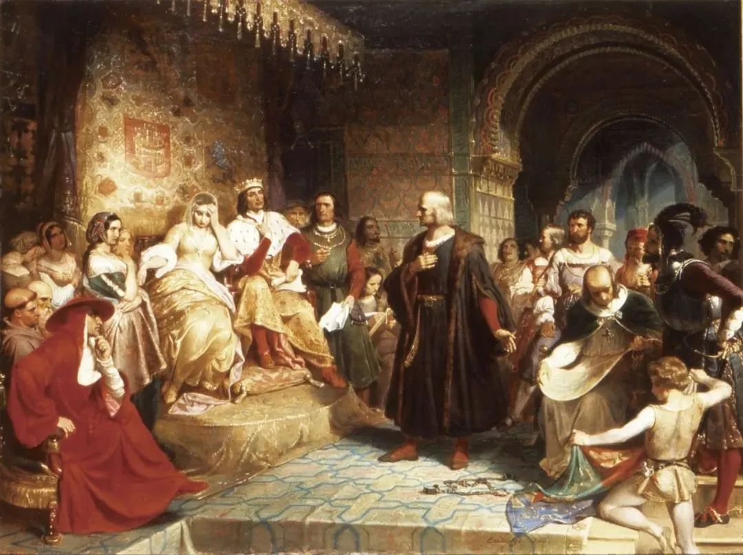 圖為伊曼紐爾·魯茨(Emanuel Leutze)的《在國王前面的哥倫布》