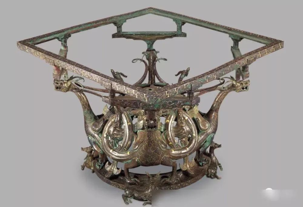 圖為收錄在河北省博物館的錯金銀四龍四鳳銅方案