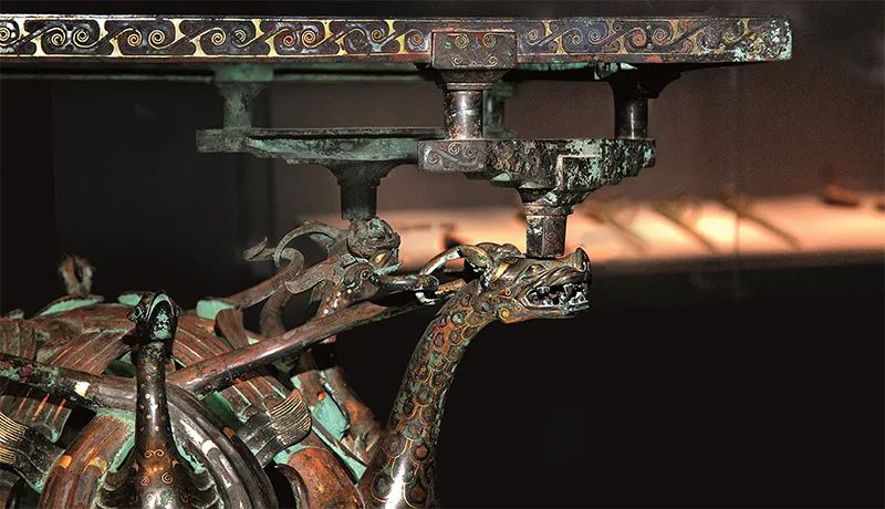 再比如戰國時的錯金銀四龍四鳳銅方案,集鑄造、鑲嵌、焊接等多種工藝於一體,複雜精巧,無以復加。