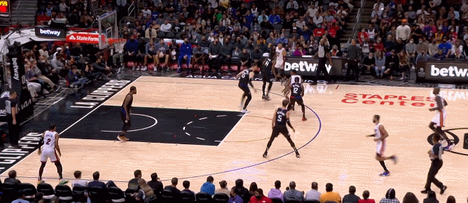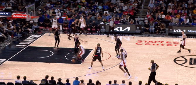 至此,洛瑞單節20分。其實把這些回合寫出來就很明顯了,洛瑞就是一招,在反擊過程中或者利用擋拆主動找快船的中鋒,然後一打一個準。