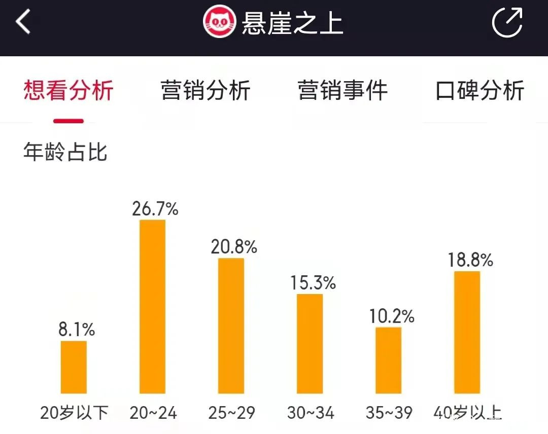 比如,時間撥回2017年,一部憶往昔歲月的《芳華》贏得了老年觀眾的廣泛共鳴,不僅獲得了由他們所貢獻的大比例票房,而且還帶動了非黃金時段場次的有效提升利用。而在今年,最受老年人觀眾青睞的電影應屬《懸崖之上》。