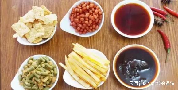 3. 配菜“因為它們,螺螄粉成為了米粉中的佛跳牆“看到一句話,形容配菜在一碗螺螄粉中所扮演的角色:“配菜如同故事的配角,可以沒有,但沒有會導致故事的不豐滿。“很是到位。鮮綠的蔬菜,黑亮的木耳,酥脆的腐竹,赤紅的花生米,爽口的酸豆角……最重要的,當然還有螺螄粉的精髓——讓人欲罷不能的酸筍。不少門外漢都以為螺螄粉獨有的“酸臭味”源自湯料,實則不然。賦予螺螄粉這種獨特個性的正是酸筍,也因此當之無愧地成為配菜中的主角。選自柳州的大頭甜筍,經過傳統的工藝發酵酸化,帶來酸爽的口感。並與辣椒油一同構成了螺螄粉的酸與辣。老缸醃製的酸豆角酸脆爽口,消食開胃;爆炒油炸後的花生米香脆酥口;廣西優質朝天椒小火炒幹,加入菜油熬製,特製成辣椒油,焦香撲鼻;被稱作“素中之葷”的腐竹,油炸之後,有人愛它單吃時的咔嚓脆響,也有人喜歡泡入湯後的嚼勁;而一把綠色時蔬的加入,一來緩解了爽辣的口感,二來也為螺螄粉增添了一抹翠綠,不甚美矣。所有的蔬菜裏,我始終覺得空心菜與螺螄粉最為般配,只可惜只在夏季裏才有。
