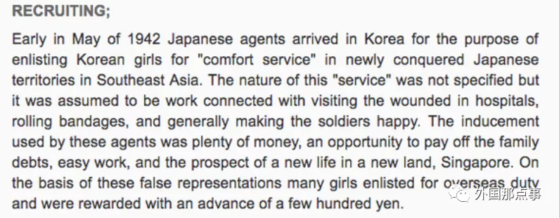 另外,關於所謂的慰安婦,已經很清楚,美國政府的調查結果顯示,日本帝國陸軍並沒有強行收取朝鮮或其他婦女。