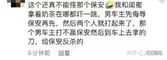 目前網絡上還有一種説法是,奔馳車主是自行從車裏拿刀下來的,然後卻被保安奪刀反殺。
