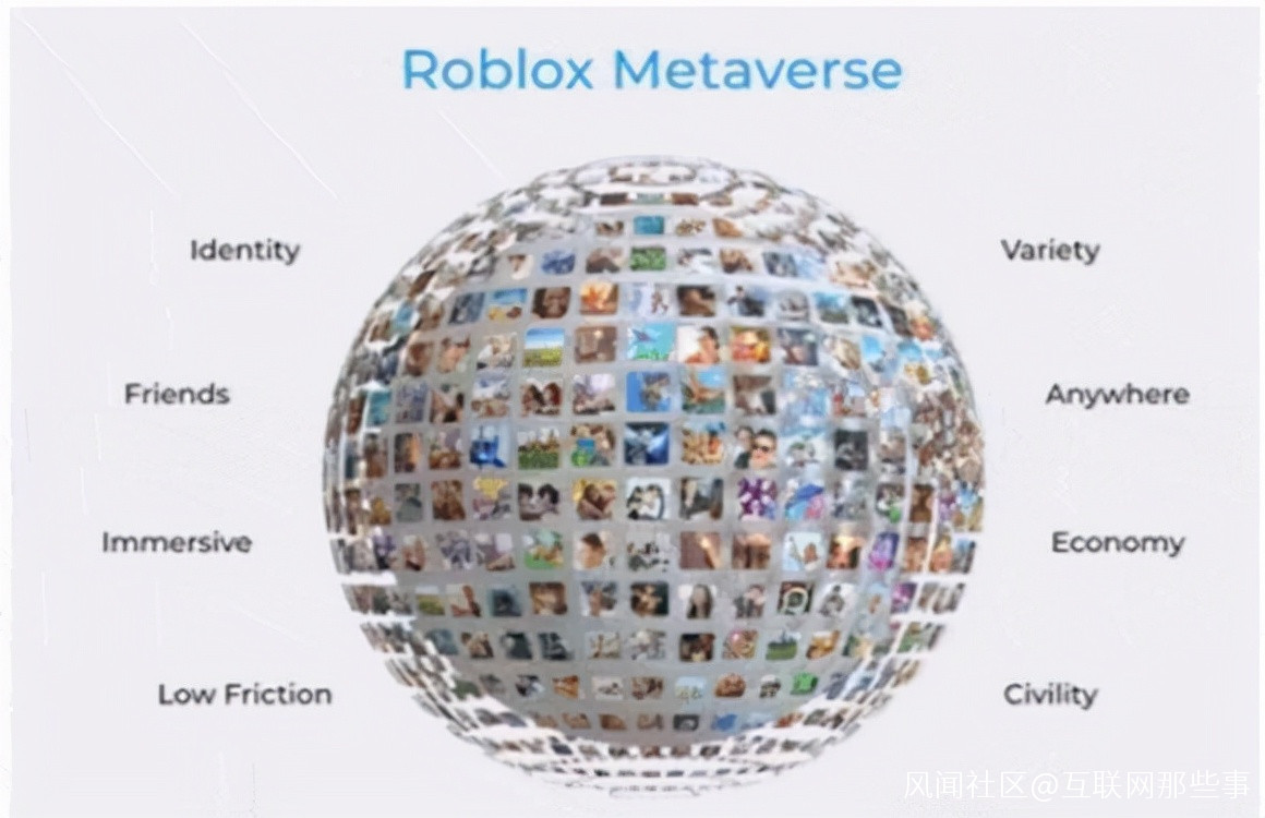 2021年3月,Roblox將元宇宙概念寫進招股書,併成功在紐約證券交易所上市,成為“元宇宙第一股”,元宇宙概念被進一步炒熱。在Roblox構建的元宇宙中,有8個典型特徵:身份、朋友、沉浸感、低延遲、多元化、隨地、經濟系統和文明。