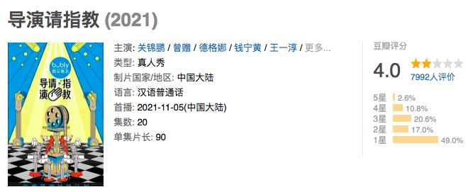 而這個節目,目前備受批評的地方也在這裏,它刻意製造了矛盾,不同類型的導演,面對幾種不同類型的觀眾,註定“眾口難調”。