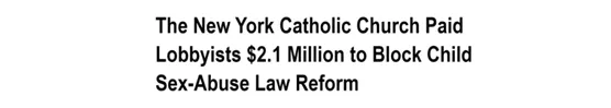 更諷刺的是,紐約天主教會曾在2016年支付給政治説客210萬美元,用以阻止該州正在進行的兒童性侵法案改革,就是想通過干預立法來減少教職人員在性侵未成年人問題上可能面臨的風險。