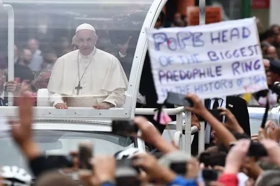2018年,教皇方濟各在出訪愛爾蘭時,就被抗議者指責為“人類歷史上最大的戀童癖團團長”。