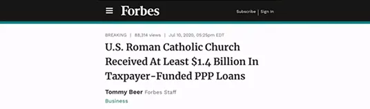 根據福布斯2020年的數據,僅美國天主教會就獲得了14億美元的捐款。