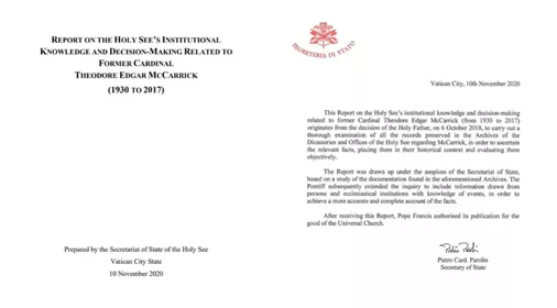 與其罪行相關的指控和證詞,直到2020年11月10日才被羅馬教廷在報告中予以記錄和公佈。