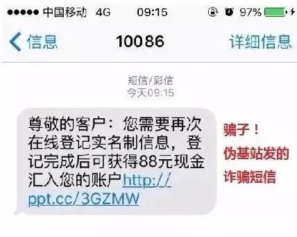 用“積分兑換現金”來詐騙的騙子,利用偽基站假冒10086不説,還模仿中國移動的官網做釣魚網站!切不可輕易信任那些看上去與官方網站長得一模一樣的釣魚網站,不僅可能中病毒,還可能被騙走錢財。大家一定要養成核實網站域名、網址的習慣。例如中國移動的官網是以10086.cn為後綴的,其他亂七八糟的網址都是假的。