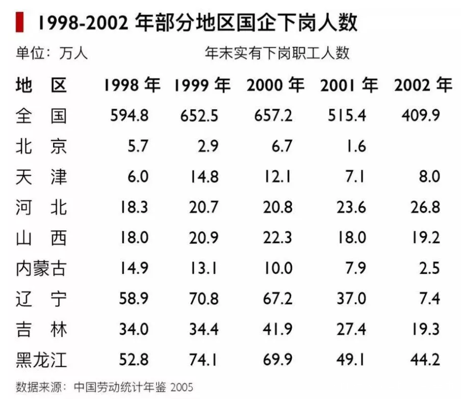 而在此時,東北的工業劇烈轉型,大煙囱轟然倒地時,東北下崗員工的數量佔到了全國下崗人數的 22%,每 5 個下崗工人裏面就有一個人是在東北失業的。