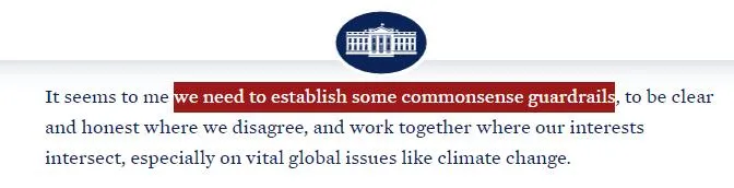 It seems to mewe need to establish some commonsense guardrails, to be clear and honest where we disagree, and work together where our interests intersect, especially on vital global issues like climate change.