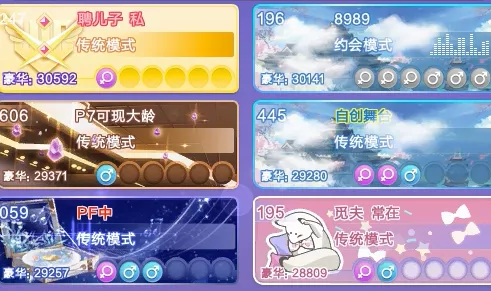 約會模式的玩法,簡單來説就是三男三女,一首歌有三次雙向選擇的機會,玩的就是心跳,雙向選擇成功則可以獲得貼身熱舞的機會藉此情意萌動。要注意這時可能會產生修羅場,情場從來都不是你謙我讓的地方!