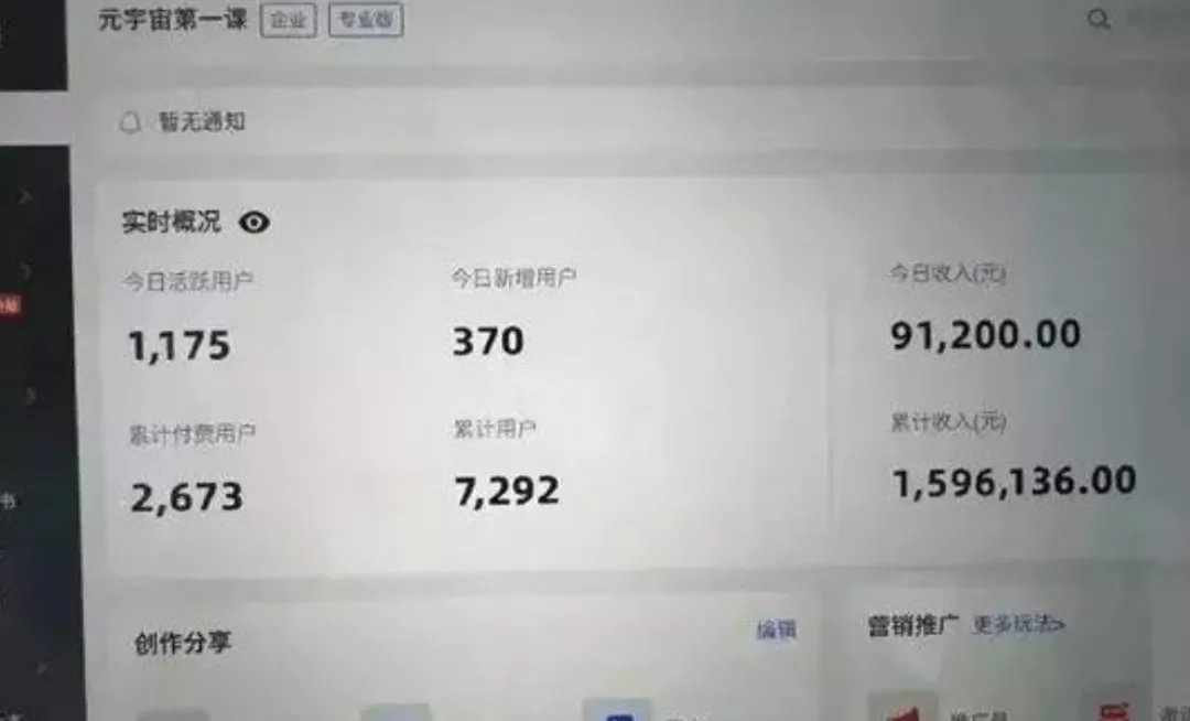羅振宇“得到”app上網絡課程《元宇宙第一課》日新增用户370人,日活躍用户上千人,累計用户7292人,累計付費用户2673人;日收入超9萬元,累計收入高達150萬元以上。這韭菜割的真容易。