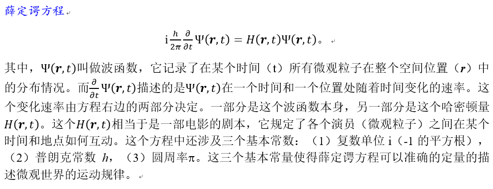 第一性原理中很重要的一條是量子力學,用於描述物質世界中微觀粒子的運動規律。就比如在電影中,劇情的發展由人與人的關係、社會法則等來推動,而微觀粒子的運動則是由量子力學來描述的。有一個被稱作哈密頓量的物理量,它規定了在每個時間各個演員(微觀粒子)之間如何“交往”,還有一個法則是“薛定諤方程”,它描述微觀世界如何演化發展。