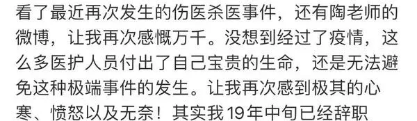 外因是接連不斷的傷醫事件,她轉發陶勇的微博時説自己心寒、憤怒以及無奈。