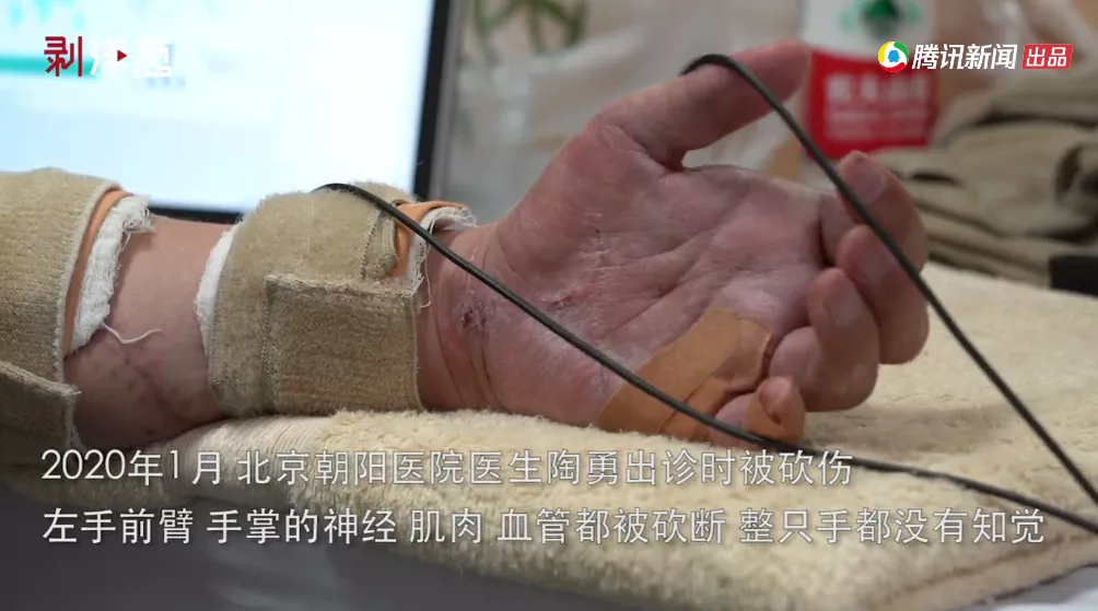 2020年初,朝陽醫院眼科主任醫生陶勇,被自己治好的患者拿菜刀追砍,雙手、頭部多處被砍傷,左手、前臂肌腱斷裂。