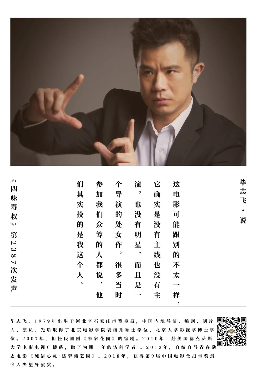 **汪海林:**歡迎來到《四味毒叔》。今天我們來了一位特別的嘉賓,他是創造豆瓣歷史上評分最低的爛片導演——畢志飛。畢導,你好!
