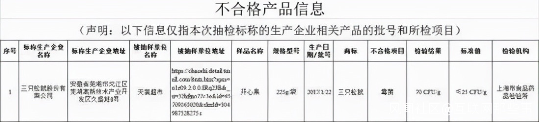 2017年8月,國家食藥監發佈了3批次食品不合格名單,三隻松鼠的開心果產品因黴菌超標赫然在列,三隻松鼠該批次開心果黴菌超過了國家規定標準值上限1.8倍。