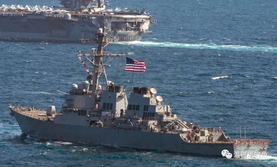> 2018年12月,Flight II型“迪凱特”號在阿拉伯海為“斯坦尼斯”號護航