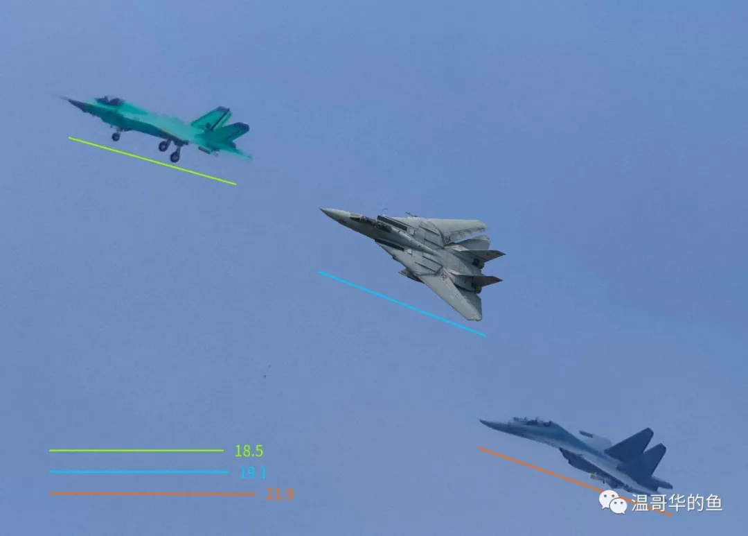F-14D的機長是19.13米,F/A-18E是18.3米,F-35C是15.5米,意味着什麼大家自己品吧。