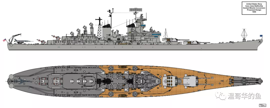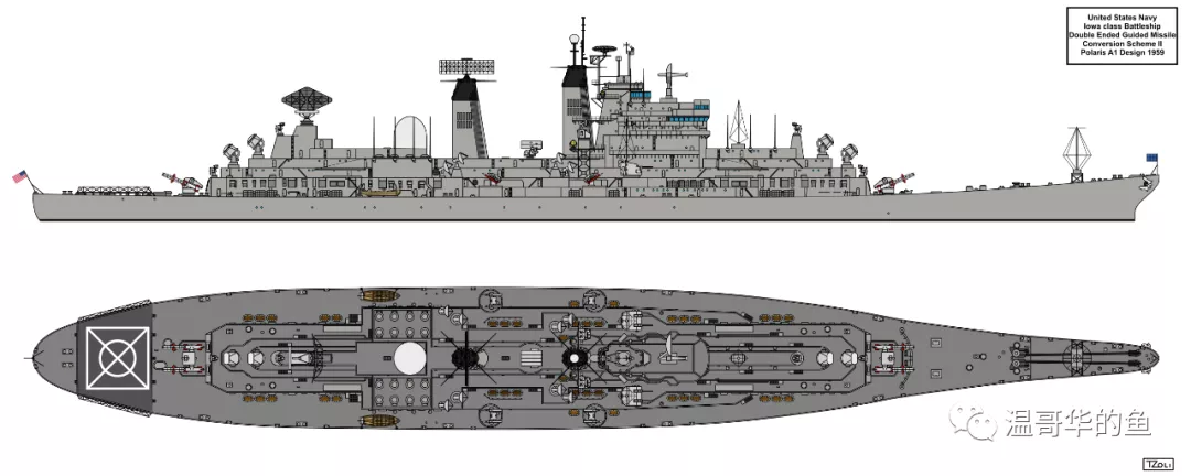 > 1956年“肯塔基”號還有一個安裝AN/SPS-32/33相控陣雷達的全導彈方案