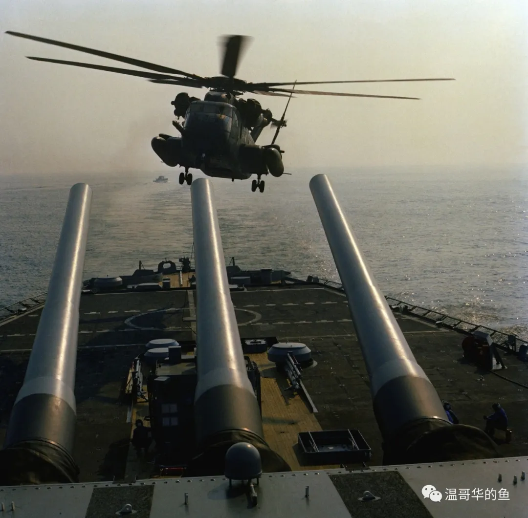 > 1984年1月7日,一架CH-53“超級種馬”降落在“衣阿華”號上