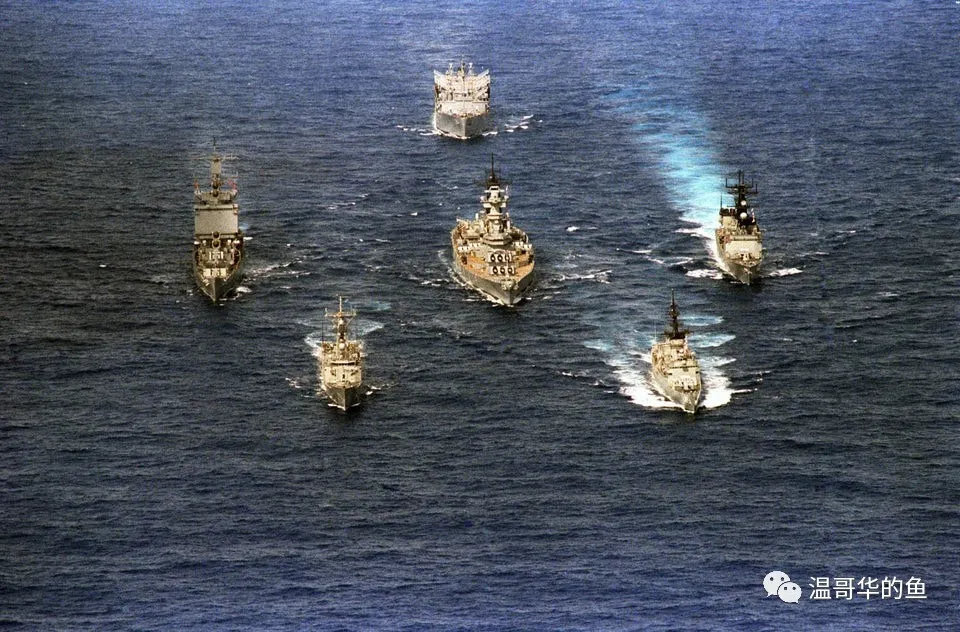 >1986的“新澤西”號戰鬥羣,陣中包括“長灘”號核動力巡洋艦和“美林”號驅逐艦(“斯普魯恩斯”級)