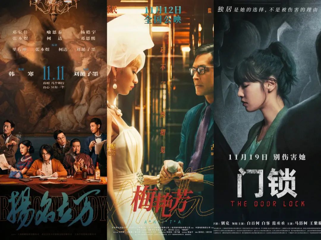 要説過去這一週,電影確實不少。娛sir受邀提前觀看了《梅豔芳》《揚名立萬》《門鎖》三部影片。截至目前,《揚名立萬》上映五天,票房累計1.58億,豆瓣評分7.7;《梅豔芳》上映4天,票房累計4503.7萬,豆瓣評分7.1;《門鎖》11月19日上映。
