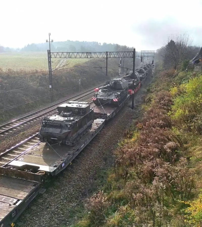 有目擊者稱,在距離波白邊境66公里的波蘭北部城市奧爾什丁地區,發現有大量德國重型裝甲裝備正在通過鐵路被運往波蘭和白俄羅斯的邊境,其中包括裝甲車、自行火炮等。