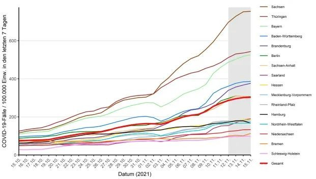 圖/自10月15日至11月15日德國各個州新增新冠感染人數
