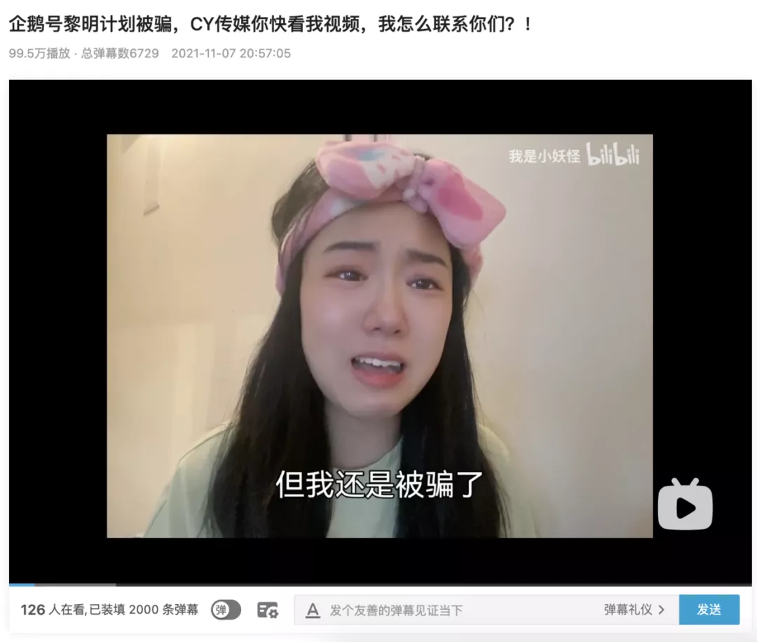 他在B站發佈視頻概述被企鵝號合作MCN機構“忽悠”的全過程。