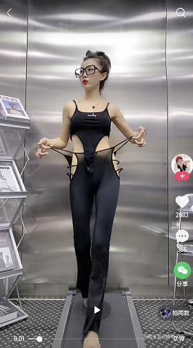 還有奇葩的是,沒法正正經經的露,那就提拉衣服向上脱,轉圈360度無死角的展示小蠻腰。